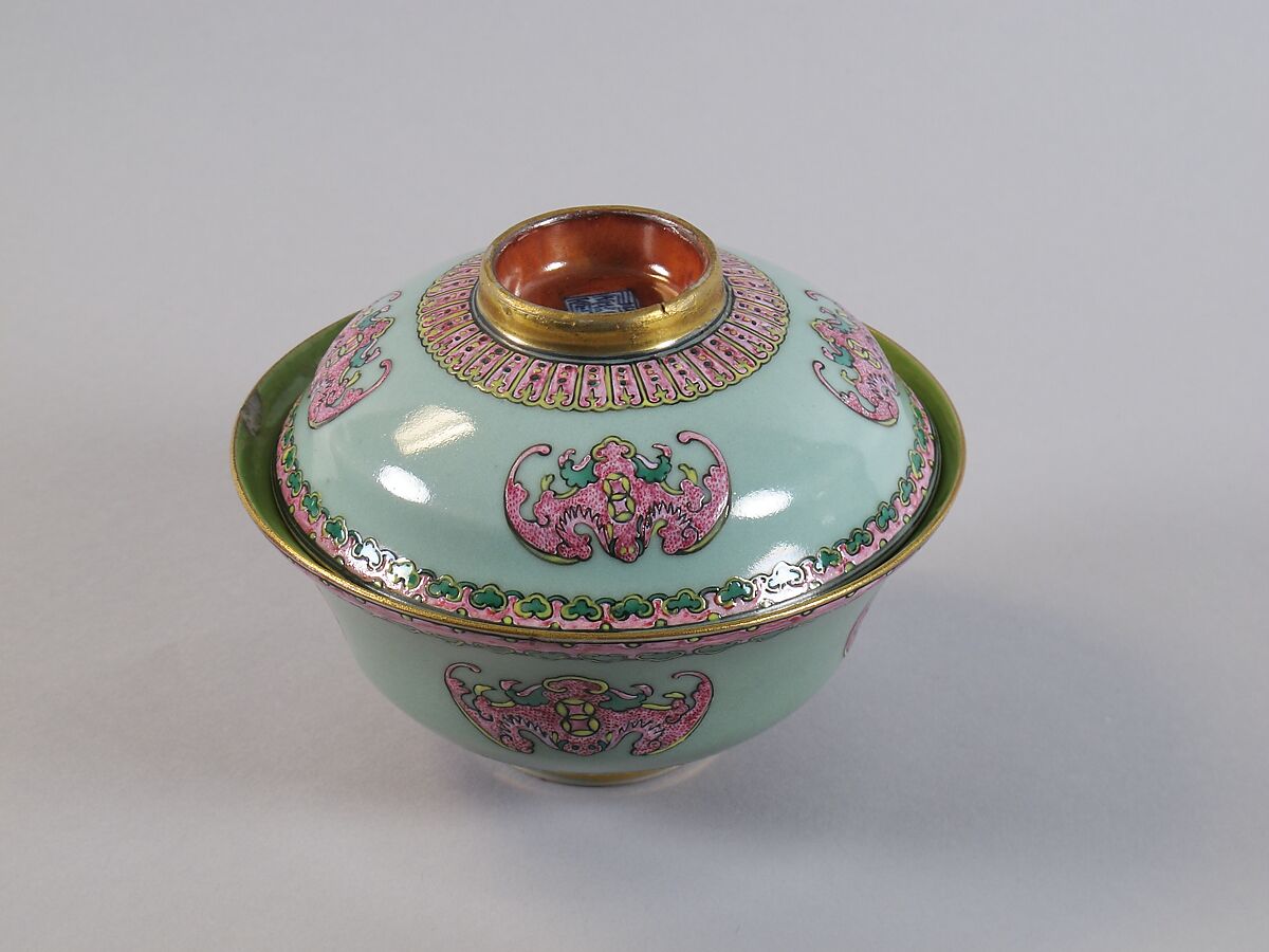 - Medium: Porcelain painted in polychrome enamels over light green glaze (Jingdezhen ware)