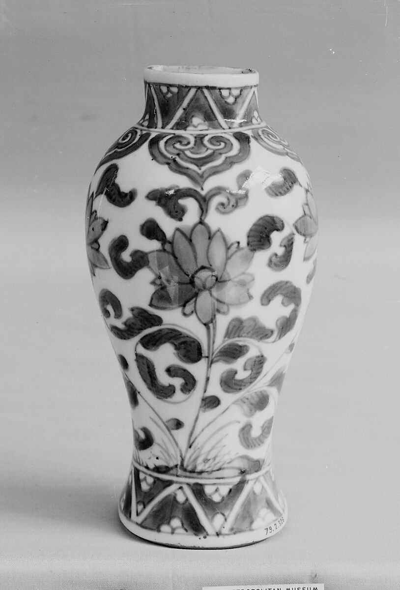 - Medium: White porcelain decorated with blue under the glaze (Arita ware, Imari type)