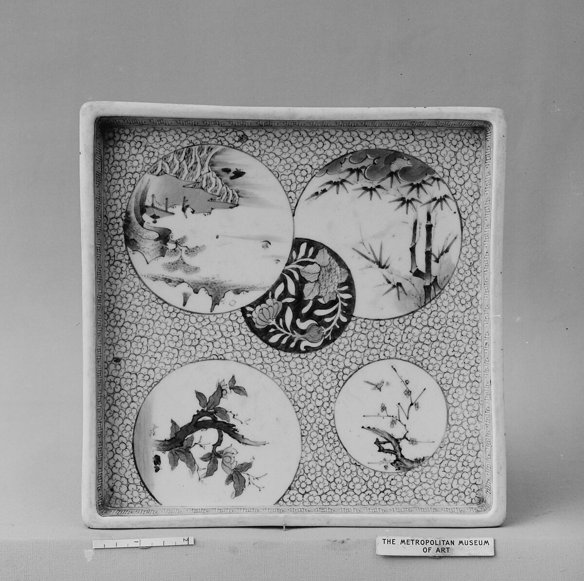 - Medium: White porcelain decorated with blue under the glaze (Arita ware, Imari type)