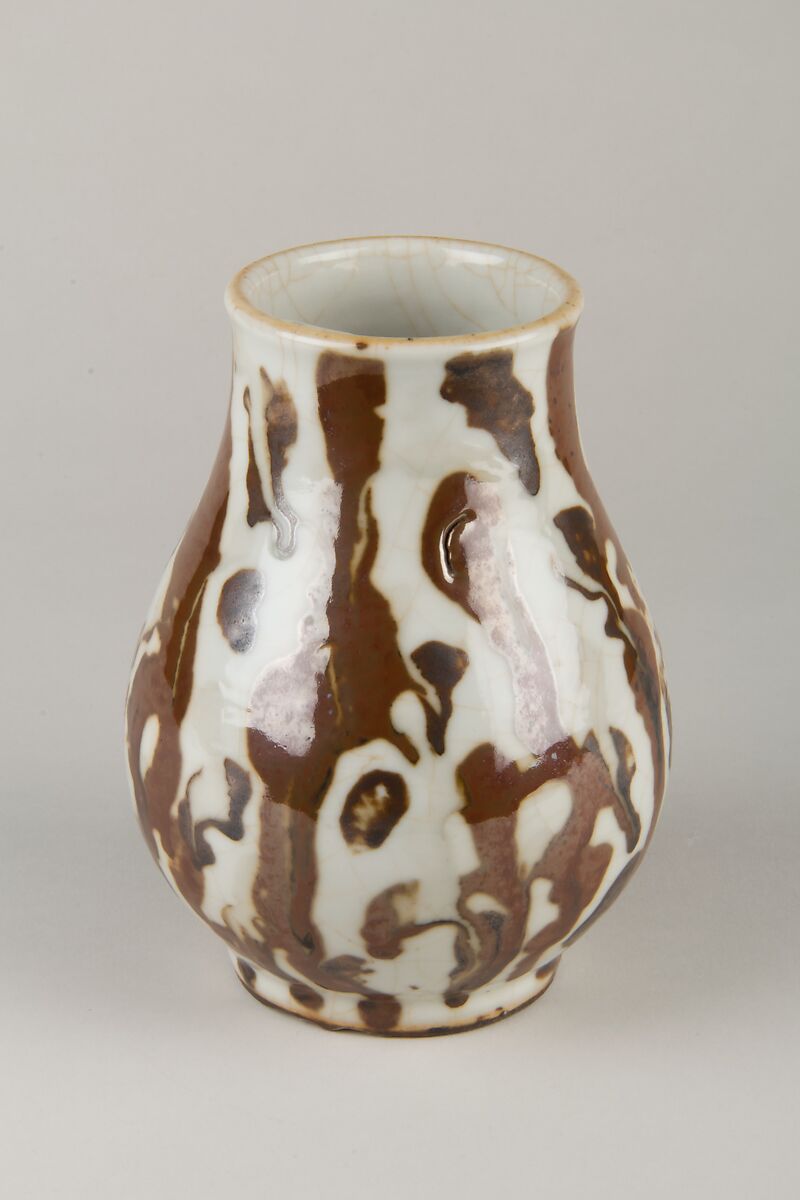 - Medium: Porcelain with mottled brown glaze