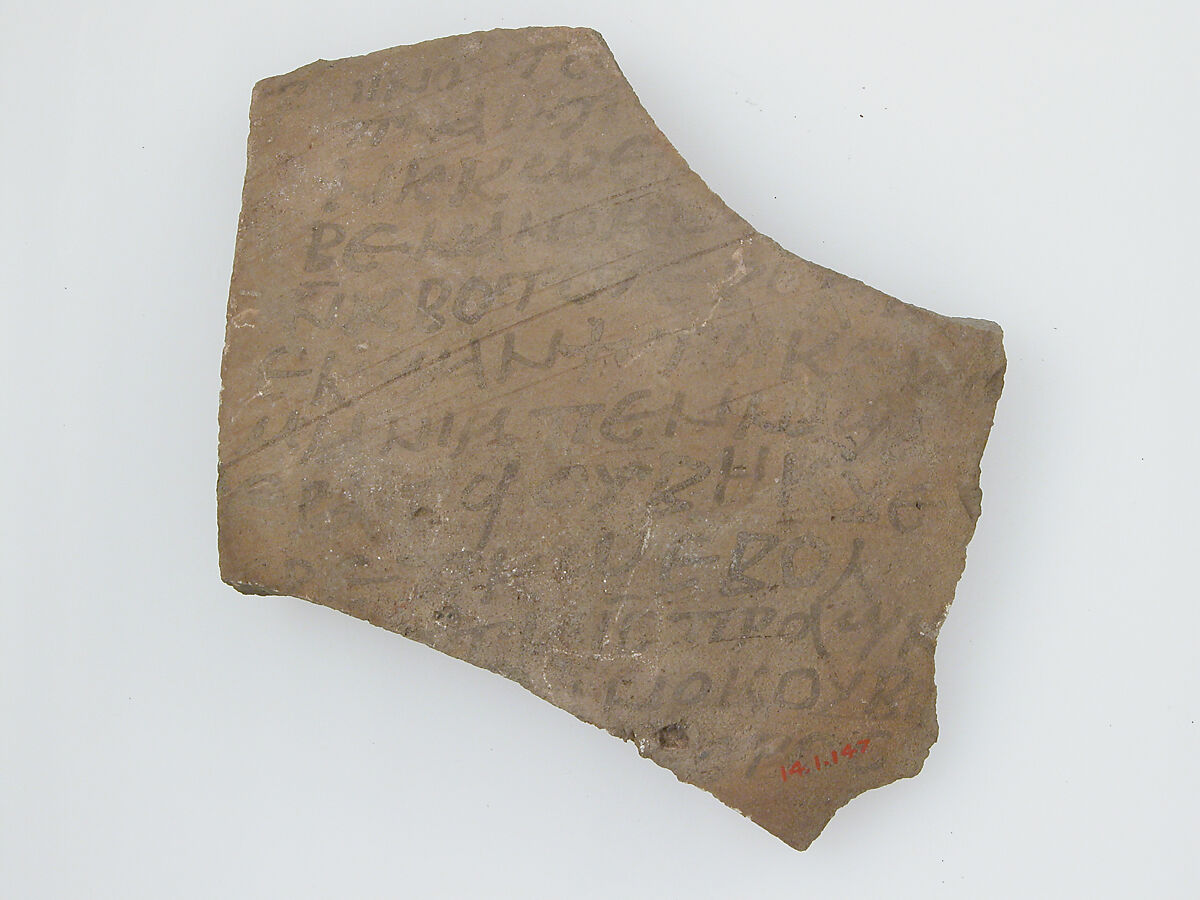 - Medium: Pottery fragment with ink inscription