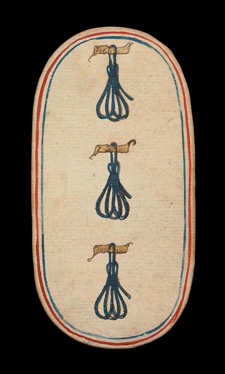 - Title: 3 of Tethers, from The Cloisters Playing Cards
