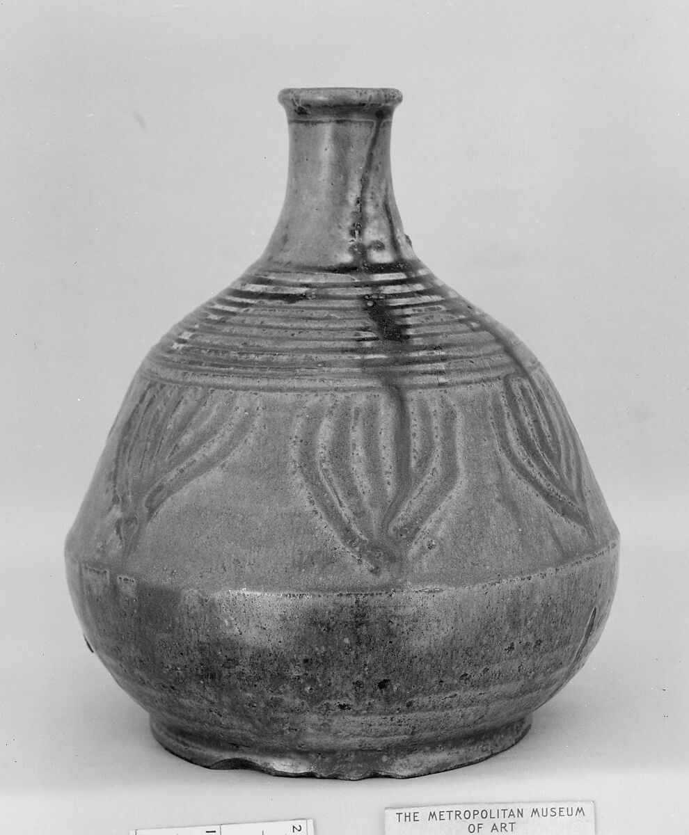 - Medium: Clay with glaze and incised ornament with rings around the neck (Satsuma ware)
