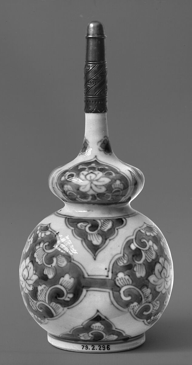 - Medium: Porcelain painted in underglaze cobalt blue (Jingdezhen ware), metal mounts