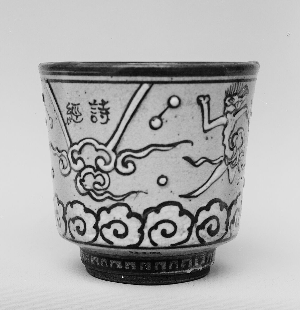 - Medium: Buff ware decorated with white slip, black lines and covered with a transparent crackled glaze (Kyoto ware)