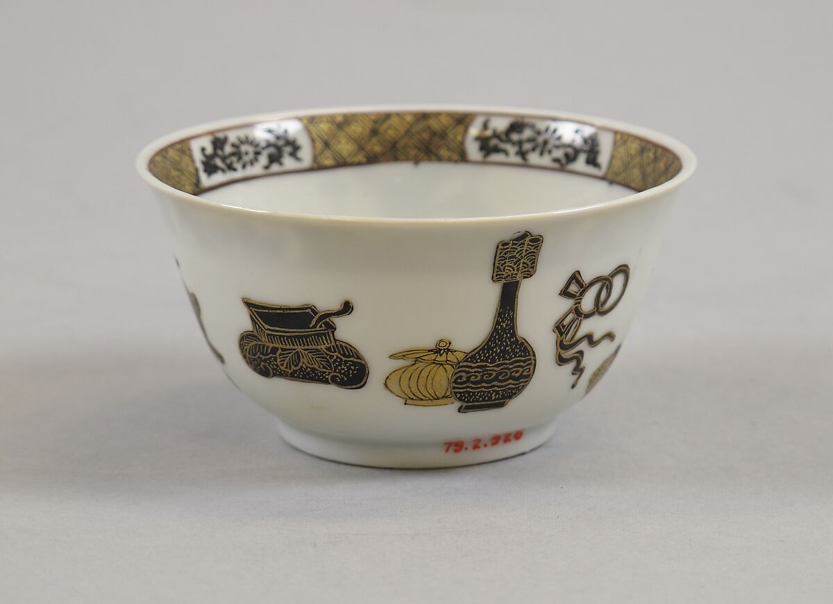 - Medium: Porcelain painted in overglaze black enamel and gilt