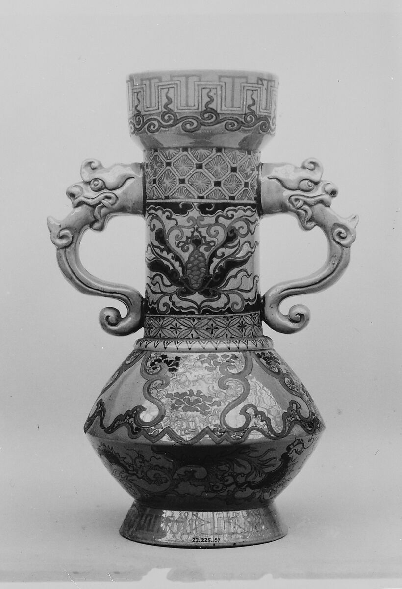 - Medium: Porcelain with glaze over which is decoration in colored enamels