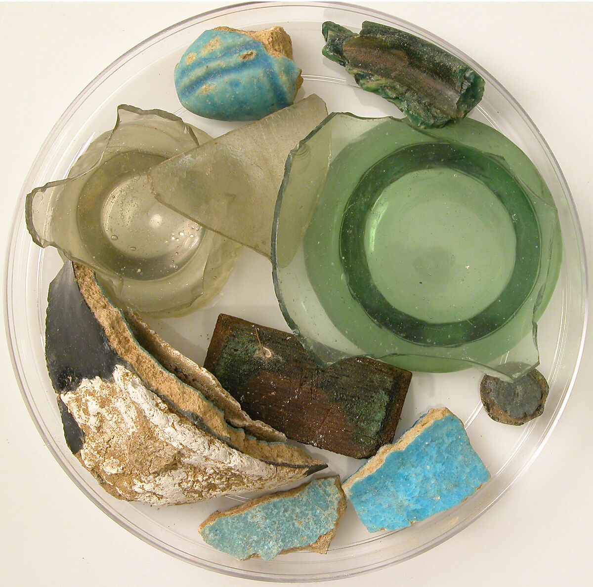 - Medium: Glass, wood, copper alloy, mortar and glazed earthenware (faience)