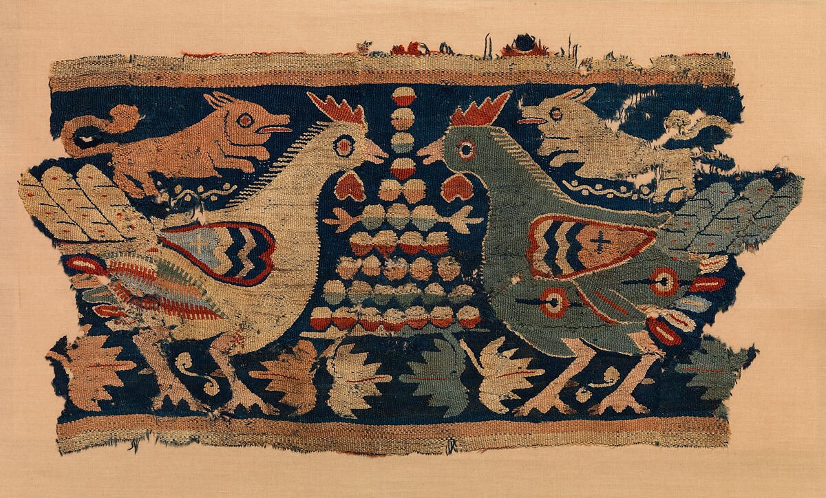 - Title: Fragment of Wall Hanging with confronted cocks and running dogs