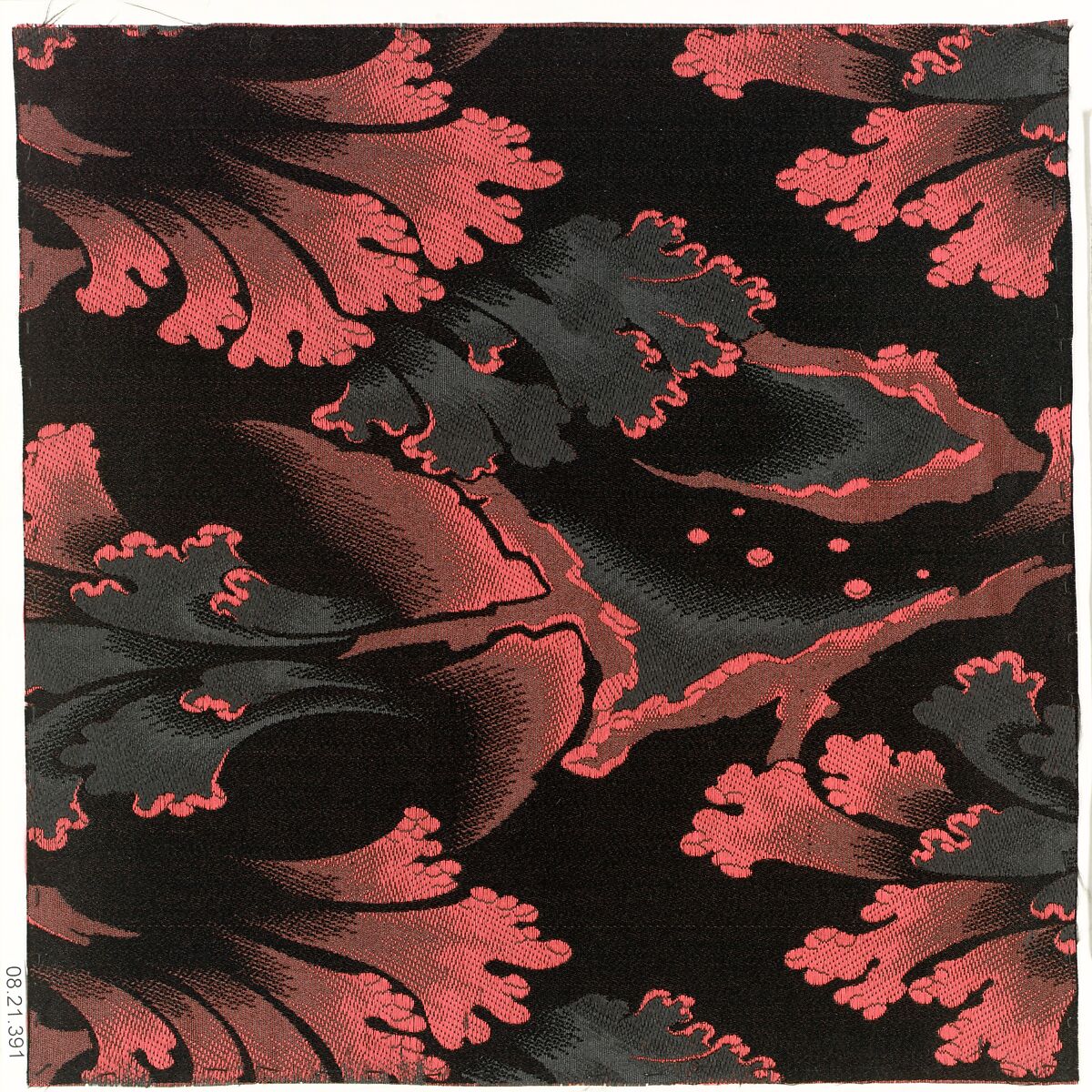 Little is known about the origin of this extraordinary textile, made by the Paris firm of J. Claude Frères. It is possible that the organic quality of its design derives from a fascination with widely published contemporaneous discoveries in medical science—namely the development of serums and antibiotics—as the decorative motifs resemble enlargements of microscopic specimens.