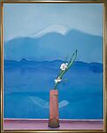 After his breakup with Peter Schlesinger in the summer of 1971, Hockney traveled to Japan with his friend Mark Lancaster. Made in London after his return and assuming multiple painterly manners, this work references the delicate, dripping washes of color-field painting in the treatment of Mount Fuji, while the white jonquils in the foreground are rendered in a hard-edged style. The image itself is also a composite: Hockney worked from a postcard of Mount Fuji and a flower-arrangement manual, rather than direct observation— perhaps an ironic response to the commercial culture he found in Japan, which contradicted his expectations of an unspoiled and bucolic landscape.
