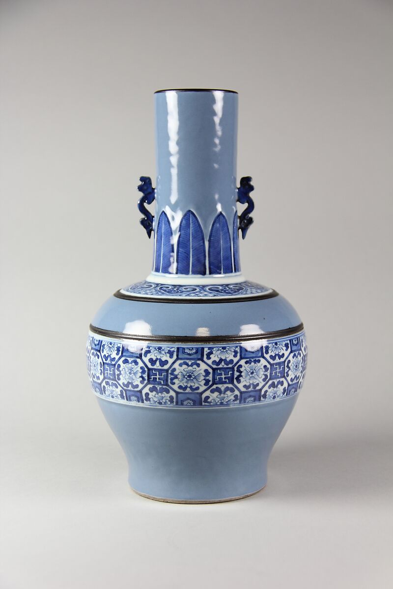 - Medium: Porcelain painted in underglaze cobalt blue and light blue glaze (Jingdezhen ware)