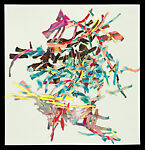 In the early 1970s, Al Loving began to piece together dyed and painted strips of canvas and found fabric in search of a style that more effectively channeled his formal inheritance as a black artist. With its torn, shaggy edges and interwoven method of construction—evocative of the physics of weaving, quilting, or fraying strips of torn cloth—Untitled alludes to a distinctly African American craft tradition and translates it into the language of painted paper. Inspired by fabric accidentally stained by his daughter in his studio, Loving’s strips are washed, sprayed, and splashed with hot, synthetic hues evocative of the glowing palette then only recently afforded by advanced industrial invention. In 1974, Peter Schjeldahl wrote that Loving’s works seem "almost to be caught in the act of moving across the wall."