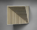 Smithson once described himself as the "keeper of derangement," and even early sculptures such as this one bear witness to his life-long desire to confound our sense of space. The stepped forms were created by stacking and then carving away sections of plastic panels—each half of the work is a mirror image of the other. Smithson rotated the piece ninety degrees and hung it on the wall, thereby generating a strange optical experience: as the square modules decrease in regular increments, they create the illusion of a plunging perspective line, with the vanishing point in the lower right corner. Perspective, however, is an effect usually confined to the flat surface of a painting: sculptures, which already exist in space, have no need for it. Making perspective "three dimensional," as Smithson once said, is therefore a logical absurdity.