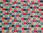 While most of the Eames' oeuvre is considered collaborative, with the majority of their designs attributed to both partners, Ray was responsible for the textile designs, which display her highly distinctive abstract yet organic graphic style. The "Cross Patch" pattern was originally submitted to a textile competition at the Museum of Modern Art in 1947. It was subsequently produced by Schiffer Prints. The geometric pattern of squares, triangles, and circles was available in several different colorways. Its nonrepresentational, highly graphic design was especially suitable to the informal, modern furnishings and interiors popularized by the Eameses and other designers of the era.