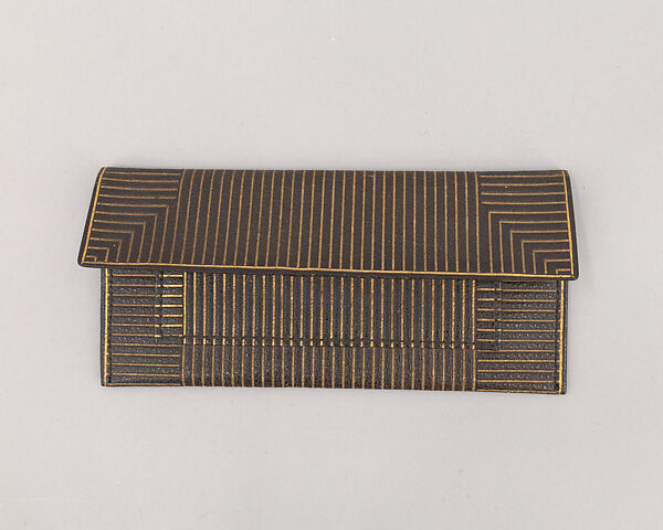 - Medium: Leather, gold leaf, cloth lining, cellulose nitrate (comb)