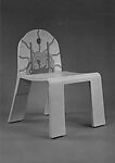 Medium: Bent plywood, white plastic laminated with stenciled pattern