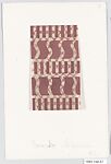 - Medium:red brown watercolor on onion-skin paper; design glues to sheet, sheet loose in mat