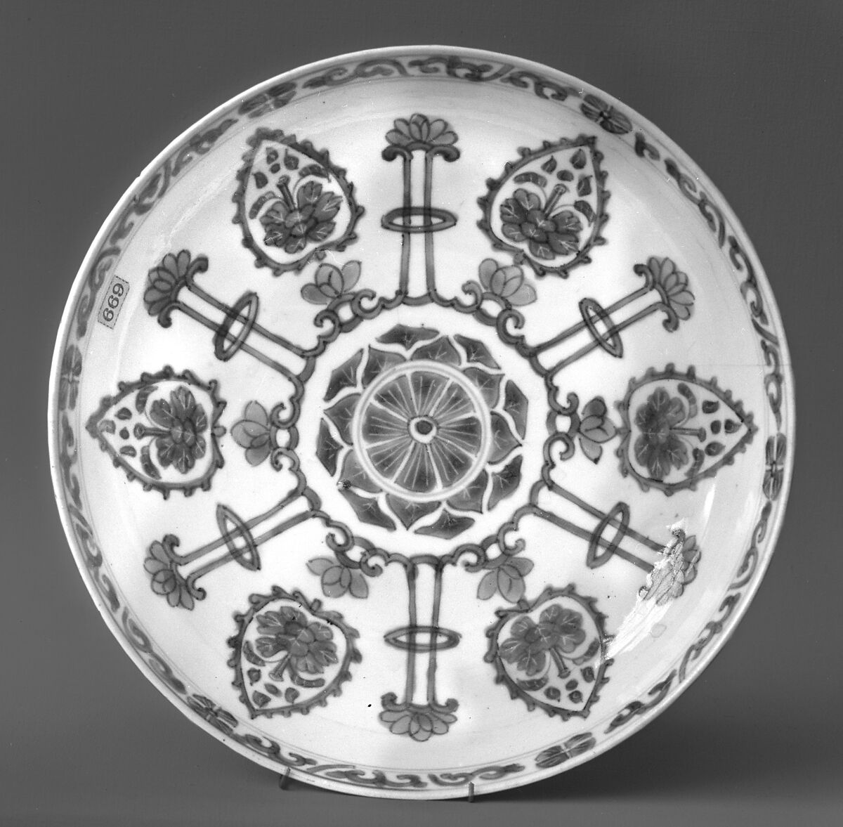 - Title:Dish with stylized flower scrolls