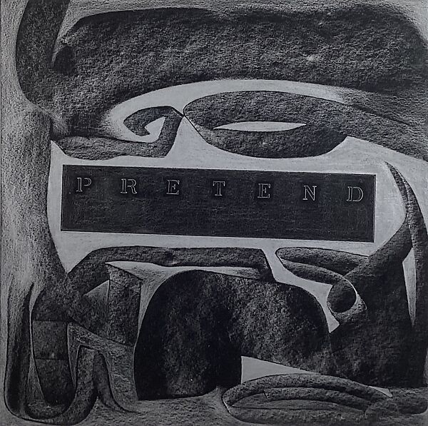 In 1975, Samaras began a drawing series titled Matrix (the Latin root of which means mother and womb) upon hearing news over the phone of his mother’s death in Greece. The Matrix drawings were executed on black paper in glossy graphite and, occasionally, metallic pencil. They depict the artist’s hands (one holds a telephone cord), honeycomb patterns, and drafting utensils—French curves and protractors—combined with stenciled words and phrases such as "Do Not Forget," "Speechless," and, here, "Pretend."