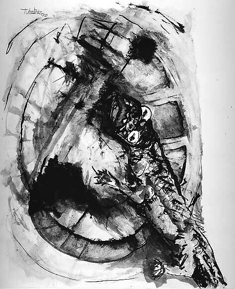 • Medium: Red and black inks and watercolor on paper