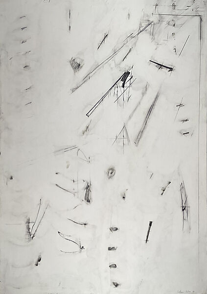 - Medium: Black porous-point pen and graphite on paper prepared with white ground