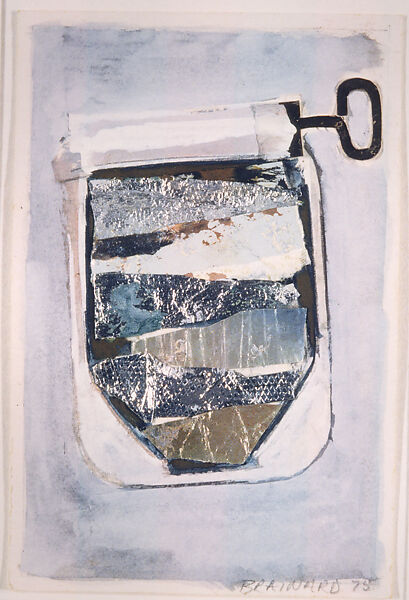 - Medium: Opaque watercolor with graphite on paper with cut and torn pasted printed papers and embossed metallic papers, metallic foil, opaque watercolor and graphite
