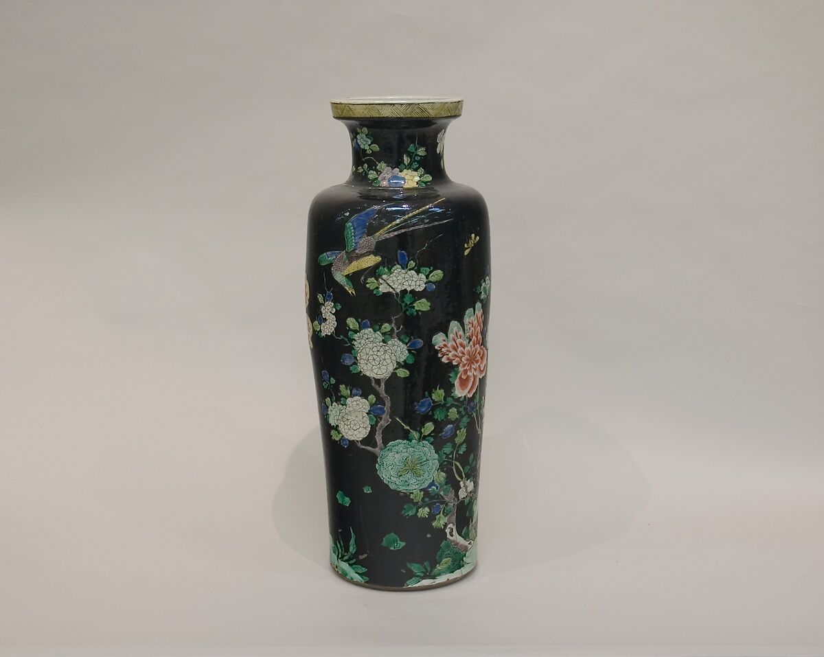 - Medium: Porcelain painted in overglaze polychrome enamels (Jingdezhen ware, famille noire)