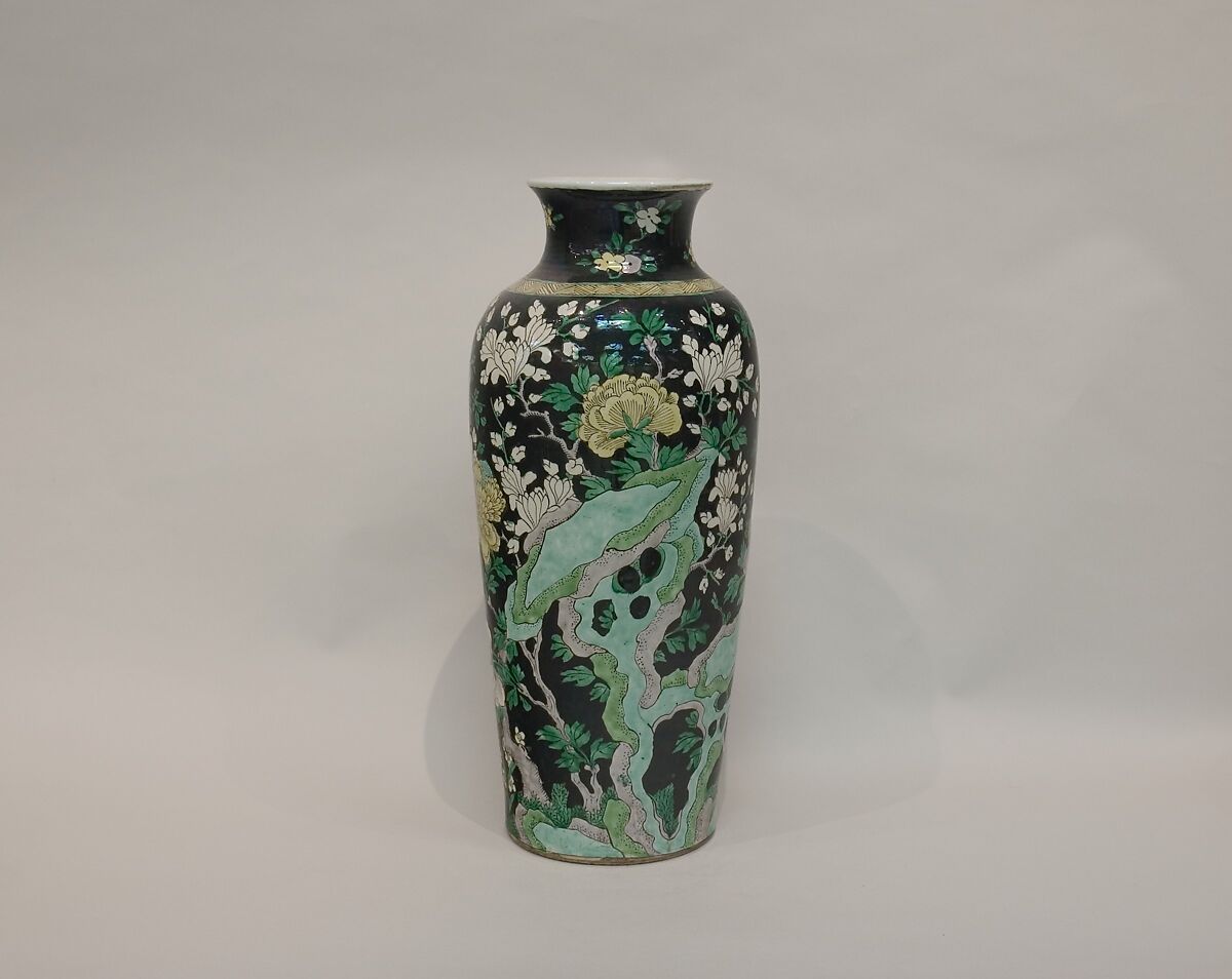 - Medium:Porcelain painted in overglaze polychrome enamels (Jingdezhen ware, famille noire)