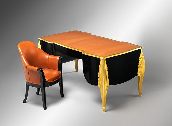 Süe et Mare’s pavilion, Musée d’Art Contemporain (Museum of Contemporary Art), at the 1925 exposition was remarkable for its lavish interior—extravagant patterning, abundance of color, and bold designs that looked back to the Louis XV style for inspiration. The centerpiece of its main salon was this ebony and gilt-bronze desk suite, which was among the most important works that curator Joseph Breck purchased for The Met at the fair.