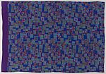 Falls was best known as a book illustrator and poster designer, gaining fame during World War I for posters supporting the military. This unusual design is based on tocapu (coded geometric designs) found on tunics woven by the Inca people. It was likely inspired by textiles in the collection of the American Museum of Natural History in New York City, which beginning in 1915, opened their ethnographic collection to textile designers as a source of inspiration.