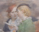 A prolific painter and printmaker, Bishop depicted scenes of everyday life and people in New York as a member of the so-called Fourteenth Street School, a loosely affiliated group of artists concentrated around Union Square. Young working women figure prominently in her art, as in this close-up view of two smartly dressed figures seemingly engaged over a piece of correspondence. Owing partly to her earlier study at the Art Students League, Bishop frequently worked from models. The models for Two Girls were Rose Riggens, a server at a restaurant where Bishop often had breakfast, and Riggenss friend Anna Abbott. The composition’s serenity and warm glow rather belies the grim economic circumstances of the Great Depression in the 1930s.