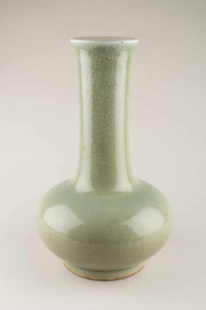 - Medium: Porcelain with crackled green glaze (Jingdezhen ware)