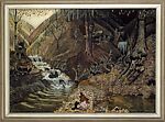 This first "reconstruction," begun in April 1943, marked a turning point for Burchfield, as he began to reclaim the inventive fantasy and spontaneity that had enlivened his earliest watercolors. The Coming of Spring was started even before a larger, more realistic version of the composition entitled Two Ravines (1934–43; Hunter Museum of American Art, Chattanooga) was completed. Both were based on the same 1917 watercolor of a Salem forest scene, but instead of working from it (as he did for Two Ravines), Burchfield painted directly on the earlier watercolor, expanding its dimensions. What the artist had once considered an 'uncompleted failure' (he painted over it in gouache in 1919 and restored it in 1931) was now dubbed "a delight," full of "abandoned creativeness."