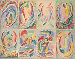 - Medium:Wax crayon and pastel on eight sheets of paper, with one cut-and-pasted strip, mounted on paper