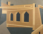 Spencer's customary subjects were the industrial edifices of factories, mills, and powerhouses. However, he also displayed a fascination with the interstices and transitional points of cities, such as bridges, rooftops, and the gaps between buildings. Erie Underpass, a late work, was painted while the artist was living in Dingmans Ferry, a town on the Delaware River in Pennsylvania. (The title is a reference to the Erie Railroad, which ran through the region.) Working in an even more rigorous variant of his Precisionist style, he transformed this purely functional structure into a bold visual abstraction. His extreme flattening of its forms results in ambiguous spatial relations between the elements of this structure: the staircase seems disconnected from the platform, and nothing is visible through the dark, arched openings of the underpass.