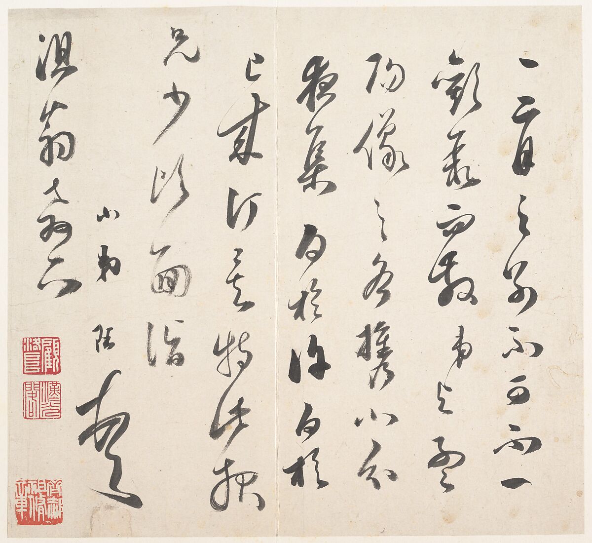 Song Jue wrote this brief letter in boisterous cursive script to his friend Li Juxiu to express his wish to get together with their mutual friend Cheng Jiasui. Cheng and Song were both prominent scholar-painters active in Songjiang (present-day Shanghai).