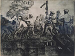 The first African-American artist to graduate from the Cleveland School of Art (now Cleveland Institute of Art), Sallee worked as a printmaker and, during the Depression, a muralist for the Works Progress Administration. He was the leader of the Karamu Group of printmakers, formed by artists connected to the Karamu House, an African-American theater and community center that premiered many of Langston Hughes’s plays. In his prints, Sallee frequently depicted scenes of urban labor and the Black experience in northern cities. Here, workers cart bricks and other debris out of a building in the process of being demolished.