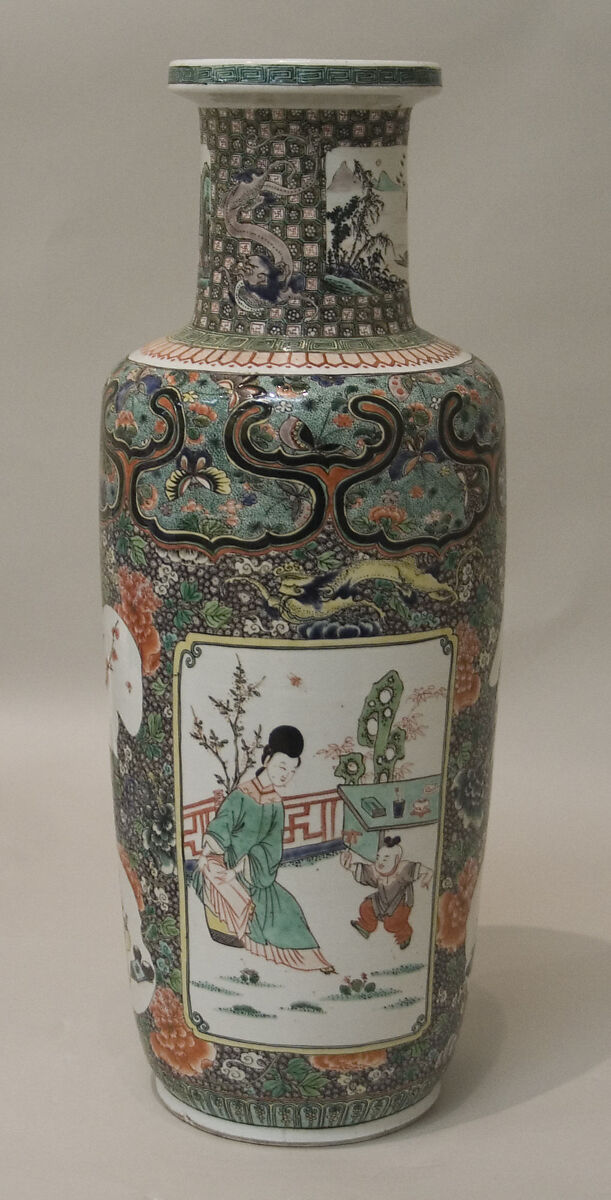 - Medium: Porcelain painted in overglaze famille verte enamels and gilding