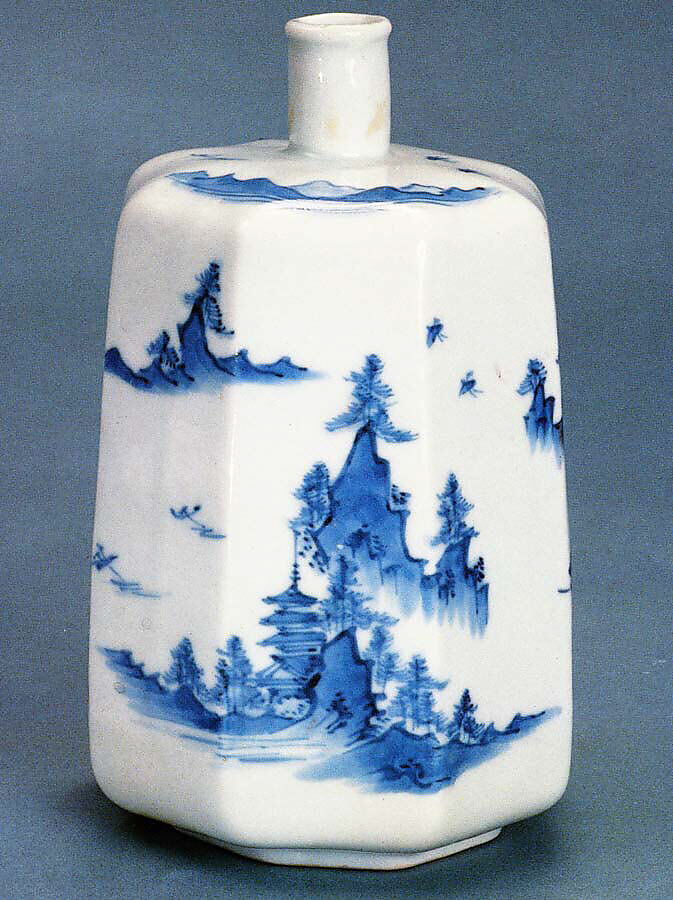 - Title: Octagonal Sake Bottle with Landscape Design