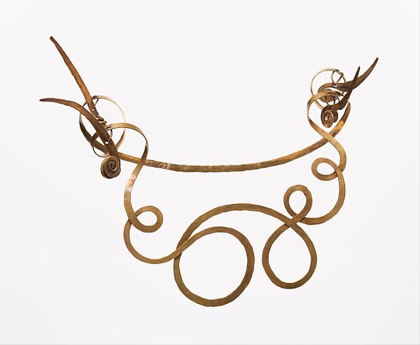 During his lifetime, Calder created 1,800 pieces of jewelry, most between 1933 and 1952. Many were made for family members or friends and given away on special occasions. This necklace was made by hammering brass wire into flat strips and then fashioning them into a decorative linear design that relates directly to his early wire portraits.