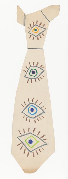 This playful tie is one of five sent by Picasso to Alfred H. Barr, Jr. for the opening of "Picasso: 75th Anniversary Exhibition" in 1957. Barr, who organized the show at the Museum of Modern Art, New York, gave this tie to William S. Lieberman, then curator of prints at the Modern, who had assisted with the exhibition and selected the drawings for the show. From 1979 to 2004, Lieberman was chairman of the Department of Twentieth-Century Art at The Met. Barr, founding director of the Museum of Modern Art, was famous for his "eye"—the art-world term for someone who recognizes quality in art; Barr's reputation was clearly not lost on Picasso.