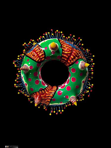 Although trained as a graphic designer and sculptor at the Liverpool College of Art, Peter Chang turned to jewelry making in the 1980s—his forms are over-sized, the colors vibrant and the finishes immaculate. Plastic and recycled acrylics were his materials of choice and most appropriately reflect the influence of the Pop Art culture prevalent during his youth in Liverpool.