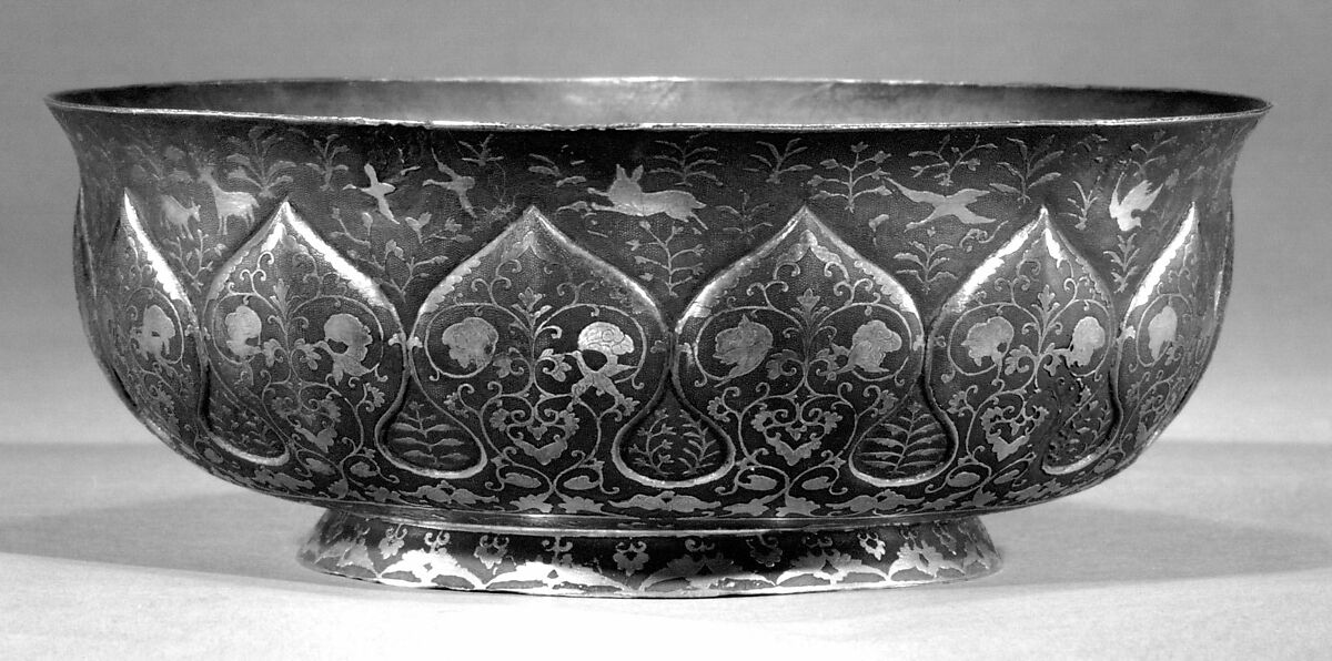 Silver articles of the early Tang period (618– 907) display complex forms and minutely detailed decoration. In this bowl, the vessel walls are decorated in repoussé.