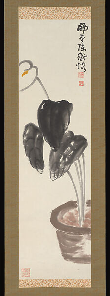 In Japan from 1902–1909, Chen saw an indigenous culture discarded in the pursuit of material advantages from the West. He was determined that China would not follow this course. Paintings like this one, with its simplified shapes and subdued color remain bound to traditional media and techniques. The plant he chose to paint however, is a fresh subject, suited to the art deco spirit that was emerging internationally. Chen Hengke died before he reached fifty, but the many artists who were his friends and students, among them Qi Baishi, advanced his ideals.