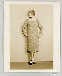 - Title: Model wearing dress made from “Inca” silk