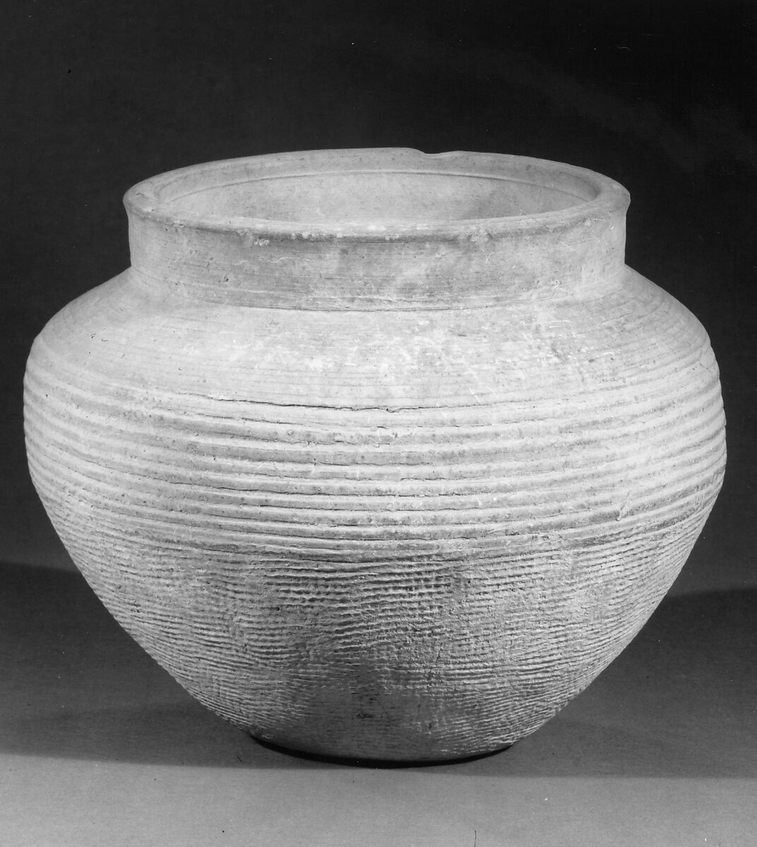 - Medium: Earthenware with ribbing and cord markings
