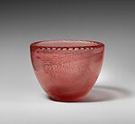 Mezza Filigrana (half-filigree) glass is a technique used since the sixteenth century in which a series of clear glass rods are fused with a piece of lattimo (milky) or colored glass at the center. Because the glass is blown into the thinnest possible structures, the vessels weigh just a few ounces each. Here, a hypnotizing moiré effect is created through the fusion and marbling of red and transparent glass.