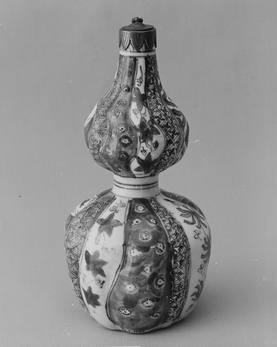 The twisted shape of the vertical lobes that define this bottle, and the density of the decoration, suggest that it was made for the Japanese market. The inscription on the lower section of the vessel is a paean to diligence and to the importance of scholarship at court.