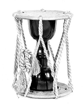 • Medium: Wood, (cherry or chestnut); horsehide; silk cord.